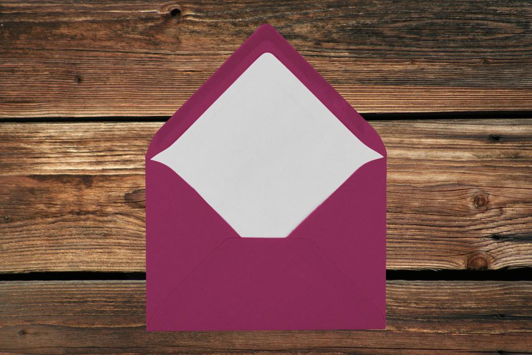 Briefhüllen mit Seidenfutter DL 110x220 mm Nassklebend Amarena gerippt 100 g/qm