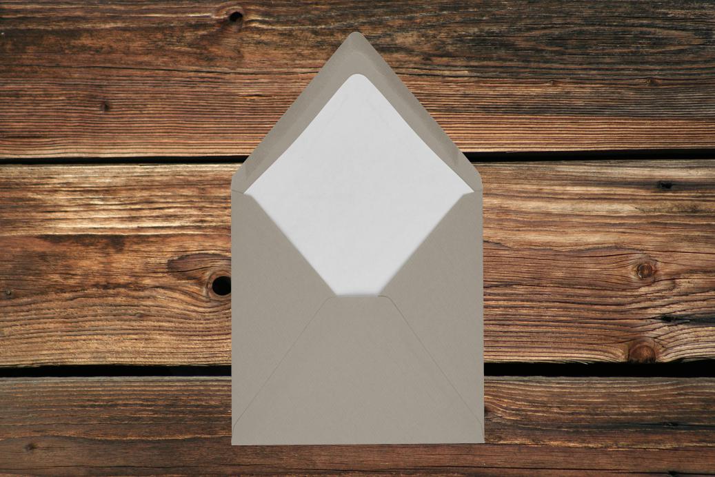 Briefhüllen mit Seidenfutter B6 125x176 mm Nassklebend Taupe gerippt 100 g/qm