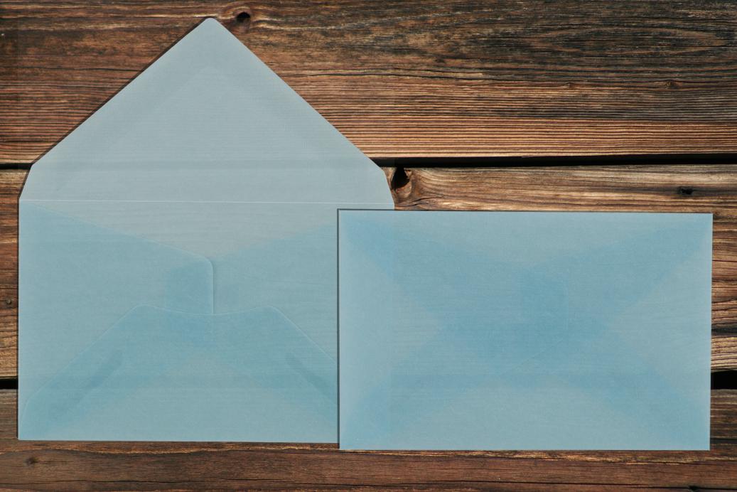 Briefhüllen 62x98 mm Nassklebend Transparent Eisblau 100 g/qm